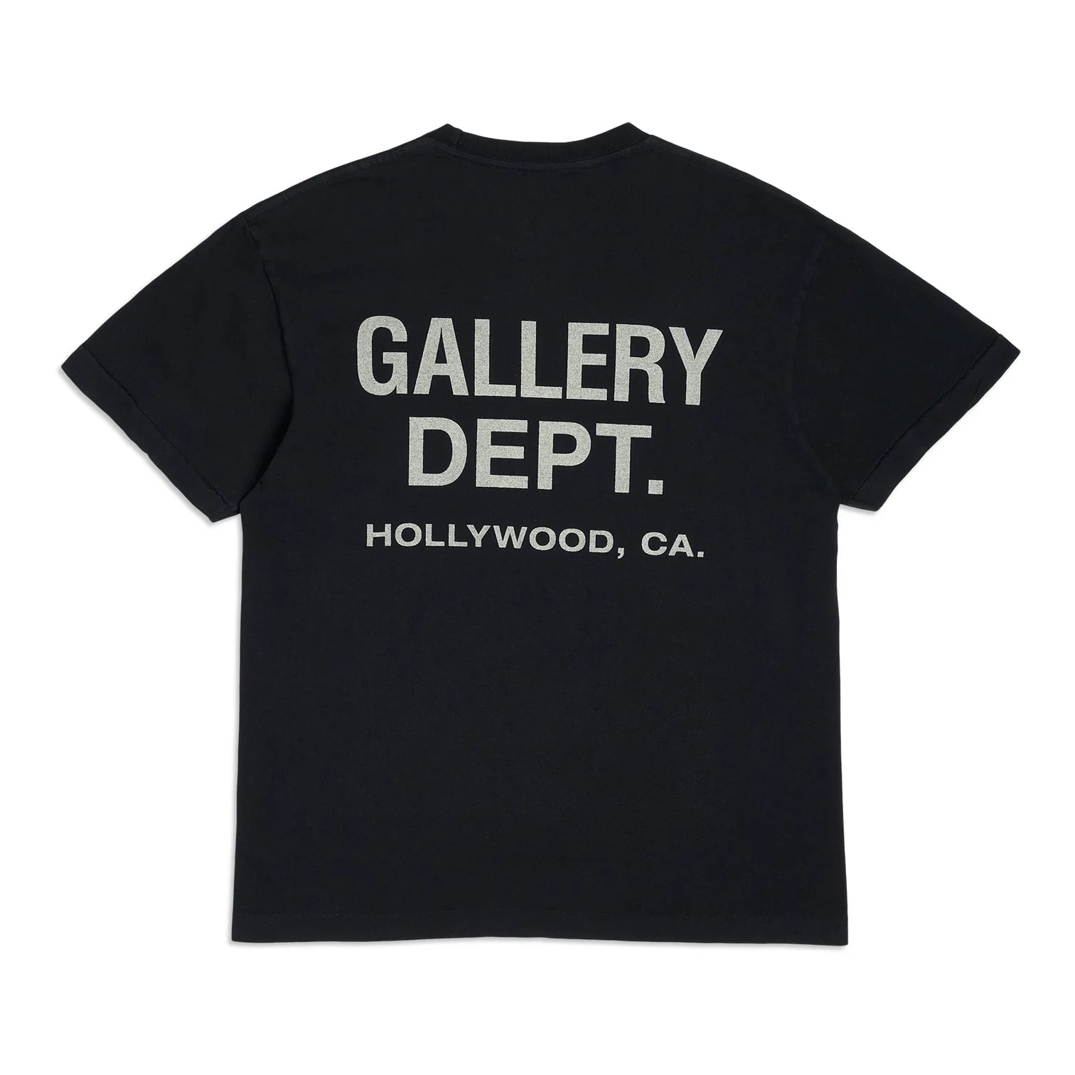 The Gallery Dept. Black Souvenir Tee blends laid-back street style with an art-meets-fashion edge. Crafted in the USA from premium cotton, this tee features a slightly oversized fit, distressed detailing, and signature screen-printed graphics on both front and back. Each piece carries Gallery Dept.’s one-of-a-kind, DIY aesthetic—designed to look lived-in and effortlessly cool.